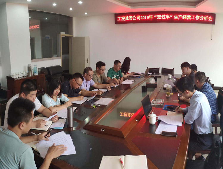 6月24日下午,工投建安公司董事長石清華主持召開2019年“雙過半”生產(chǎn)經(jīng)營工作分析會,簡要分析了當(dāng)前完成目標(biāo)情況和存在的問題。要求對主要管控項目形成統(tǒng)一的管控制度,強化風(fēng)控能力。并對下半年的工作進(jìn)行部署,提出要主動作為,主動管理,加快進(jìn)度,全力以赴,做到公司承建項目各關(guān)鍵節(jié)點在預(yù)計時間內(nèi)完成,確保公司全年經(jīng)營目標(biāo)的完成。